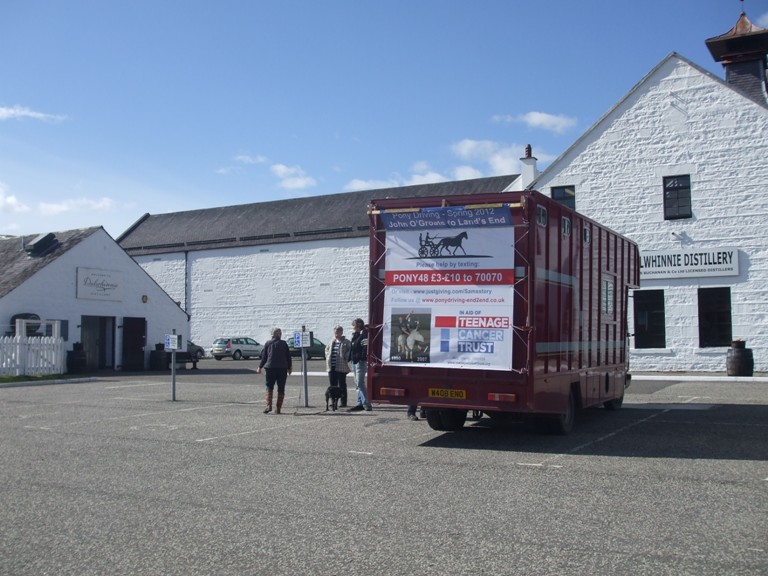 2.5 hrs later repaired lorry, jeep and ponies reunited at Wick Tesco, cold and wet and miserable. Ponies and Jeep head off, "lorry won't start". An hour later Horse Rescue escort lorry to garage for a new battery and Wick becomes a distant memory.